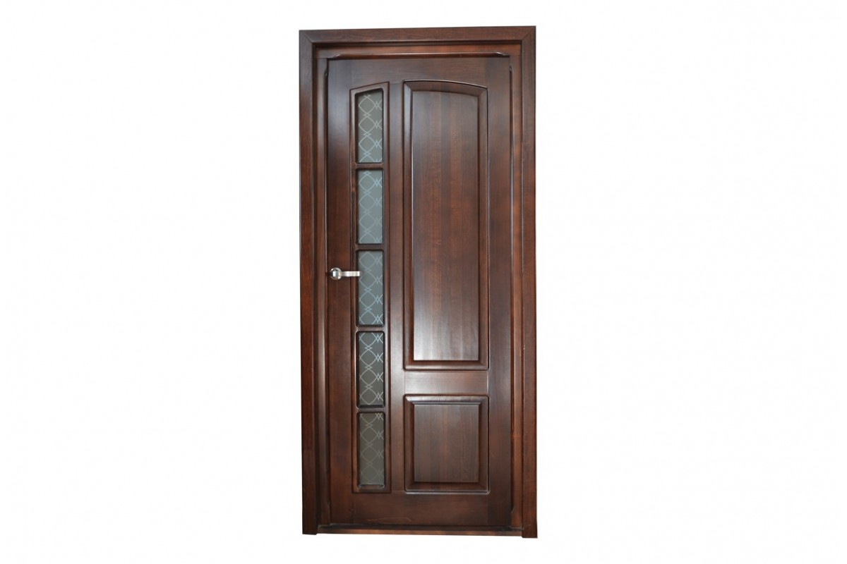 Ansamblu foaie de usa realizată din lemn masiv cu cheder